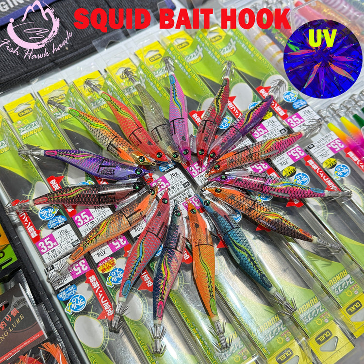 New Squid Hook #2.5/12g #3.0/14g #3.5 /19g Rapid inkiSng Artificial Luminous Squid Jigging Bait Wood Shrimp Hooks for Saltwater Tackle Fishing Lure