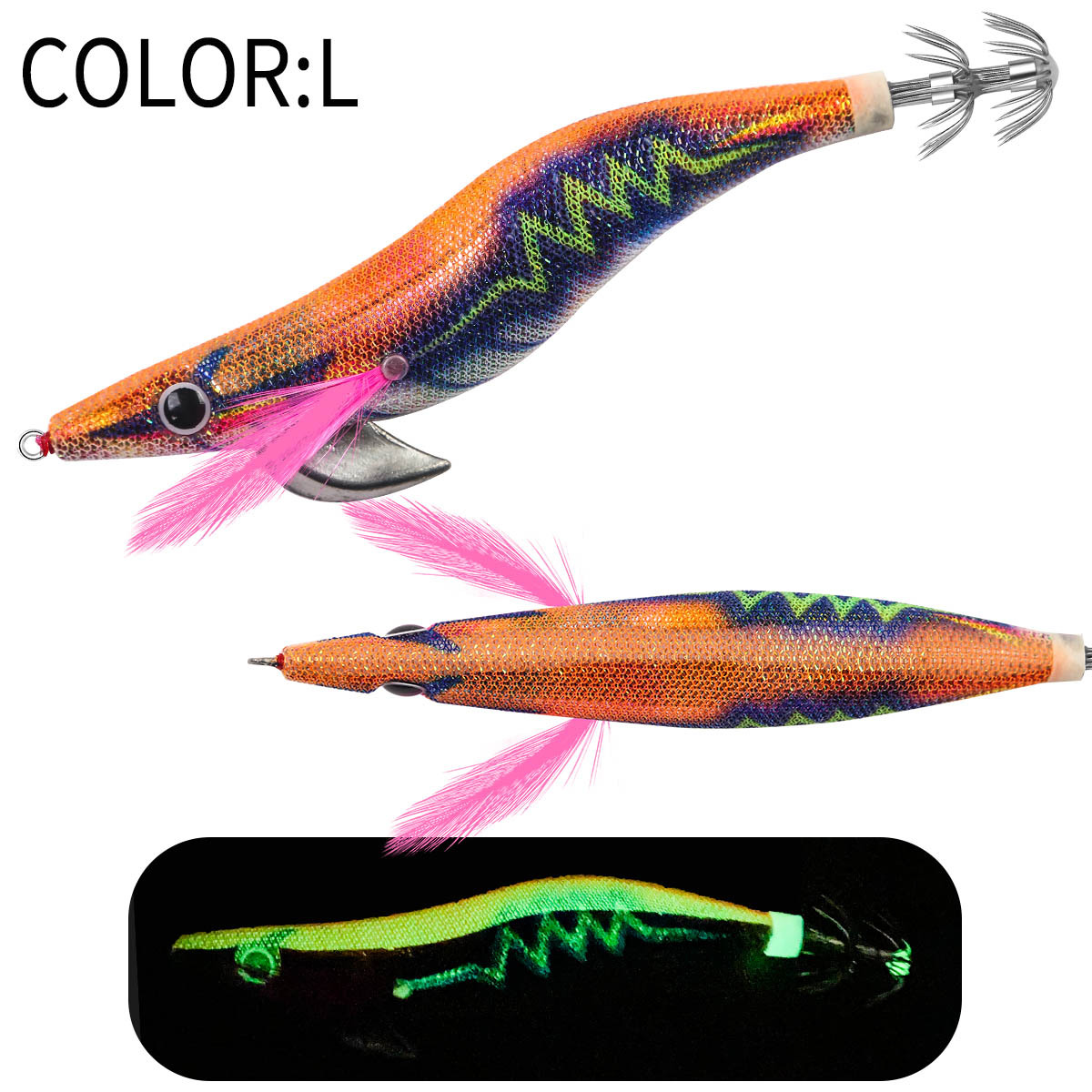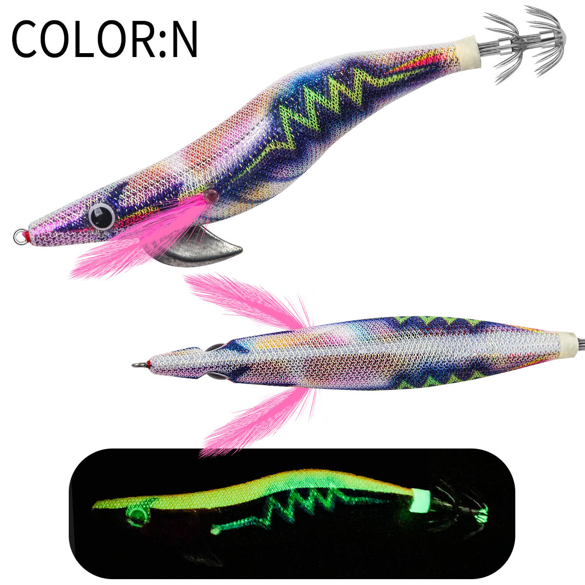 New Squid Hook #2.5/12g #3.0/14g #3.5 /19g Rapid inkiSng Artificial Luminous Squid Jigging Bait Wood Shrimp Hooks for Saltwater Tackle Fishing Lure