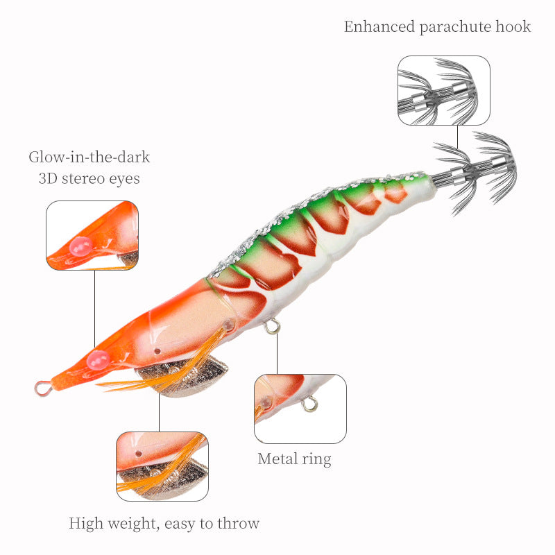 New Squid Hook #3.0/11g Rapid inkiSng Artificial Luminous Squid Jigging Bait Wood Shrimp Hooks for Saltwater Tackle Fishing Lure