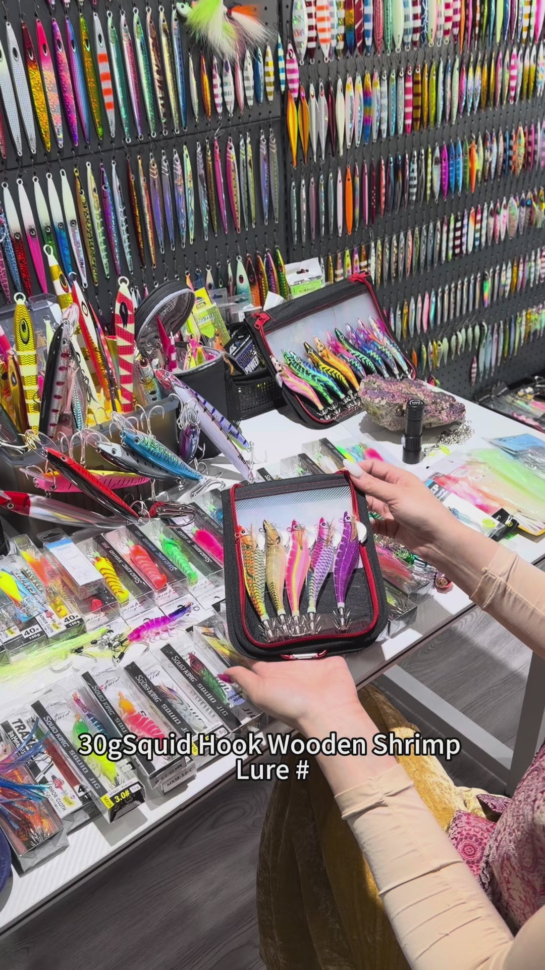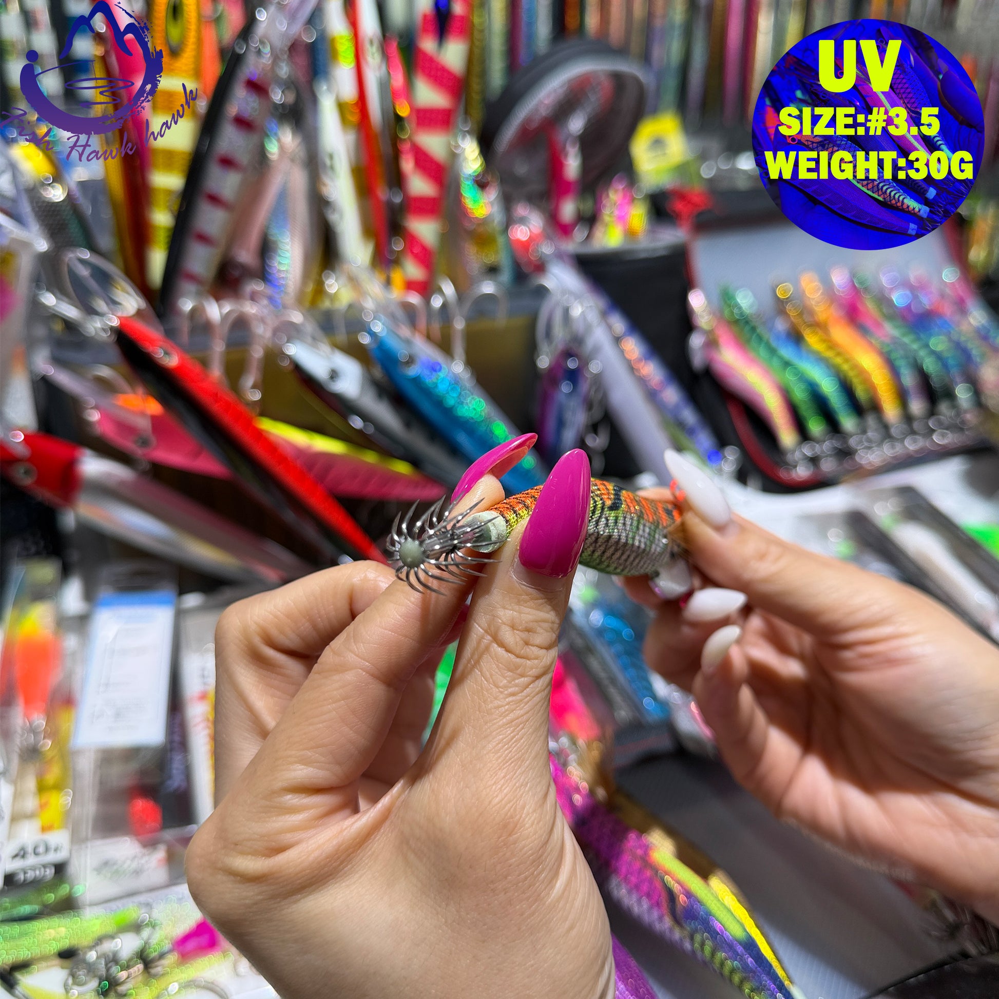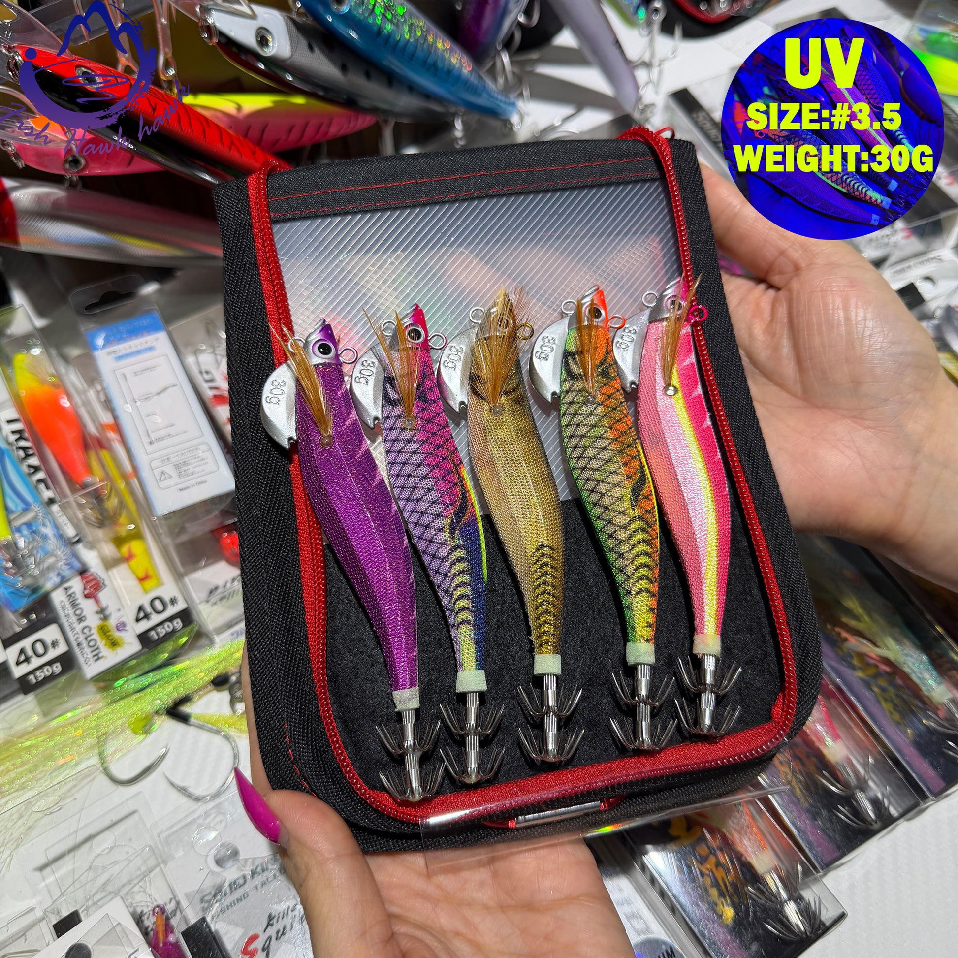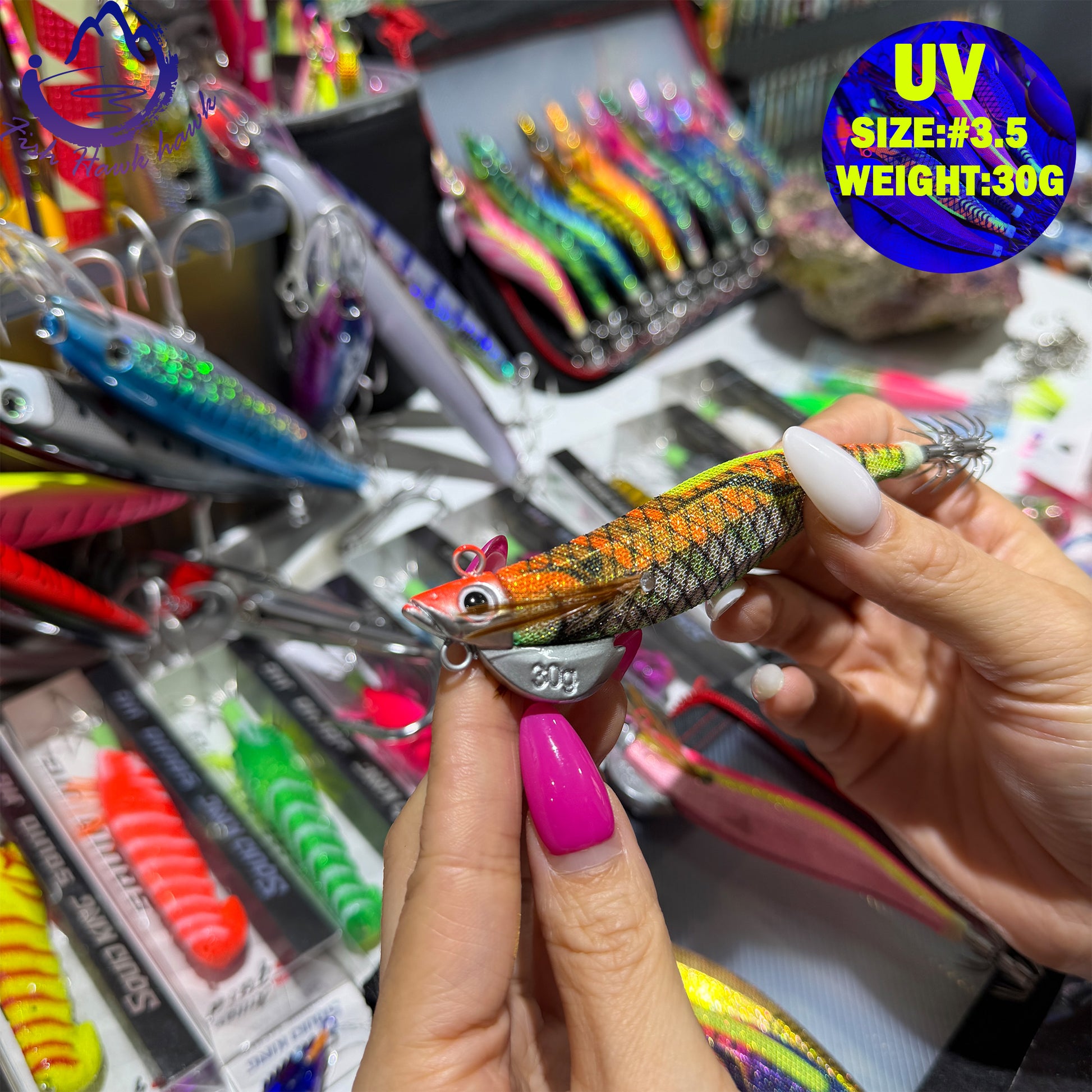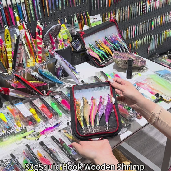 New 30g ABS Squid Hook Wooden Shrimp Lure #3.5 UV Glow Octopus/Squid Jigging Fishing Lure Deep Sea Saltwater & River Fishing Squid Hook