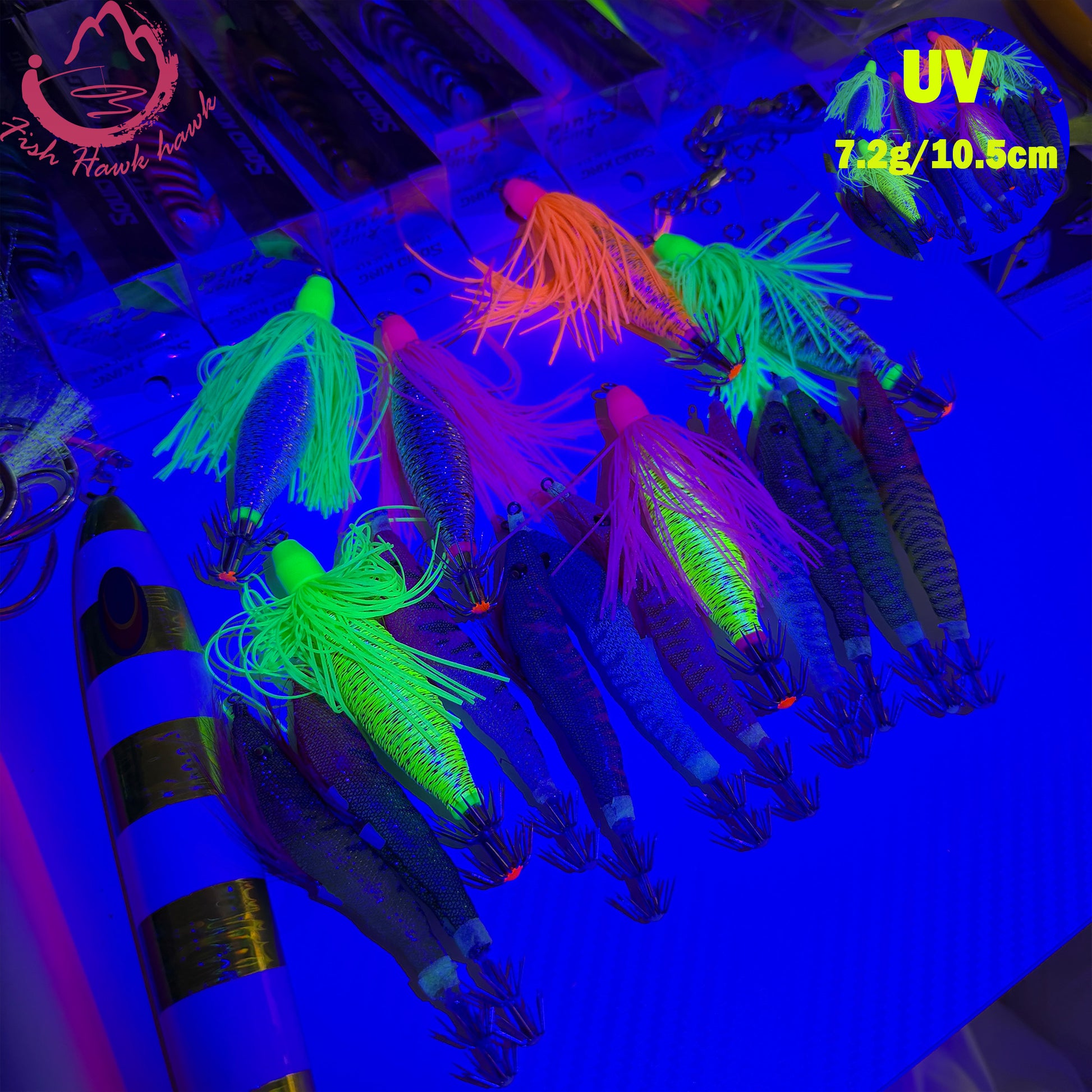 New 7.2g 10.5cm Glow Egi PVC Squid Jig Lure with LED Light for Saltwater Fishing Midwater Bait Cuttlefish & Squid 3D Eyes Squid hook