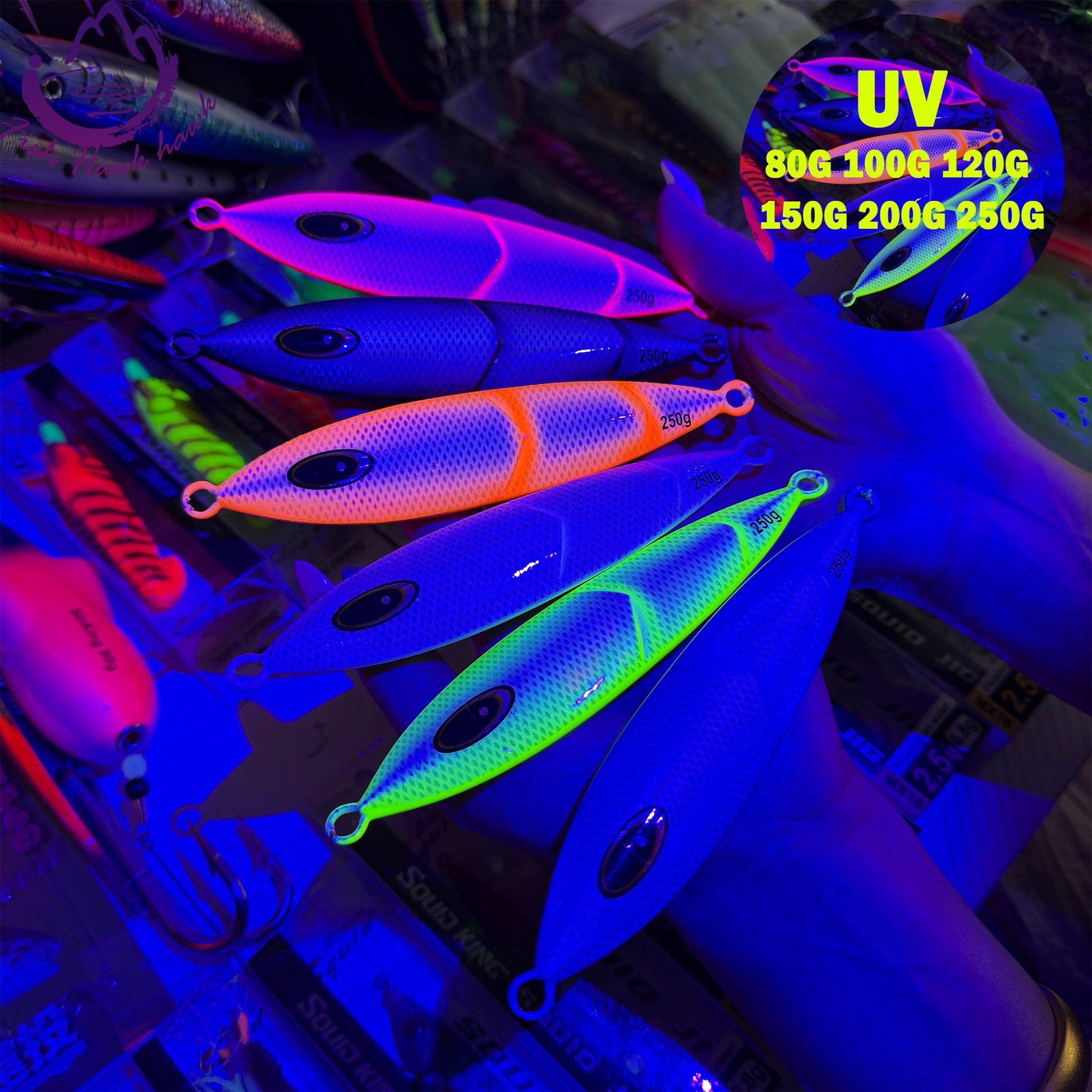 New Premium Metal Slow Pitch Jigs Fishing Lure Flat Fall Flutter Action 80g 100g 120g 150g 200g 250g Saltwater Deep Sea Assist Hook for Tuna & Kingfish