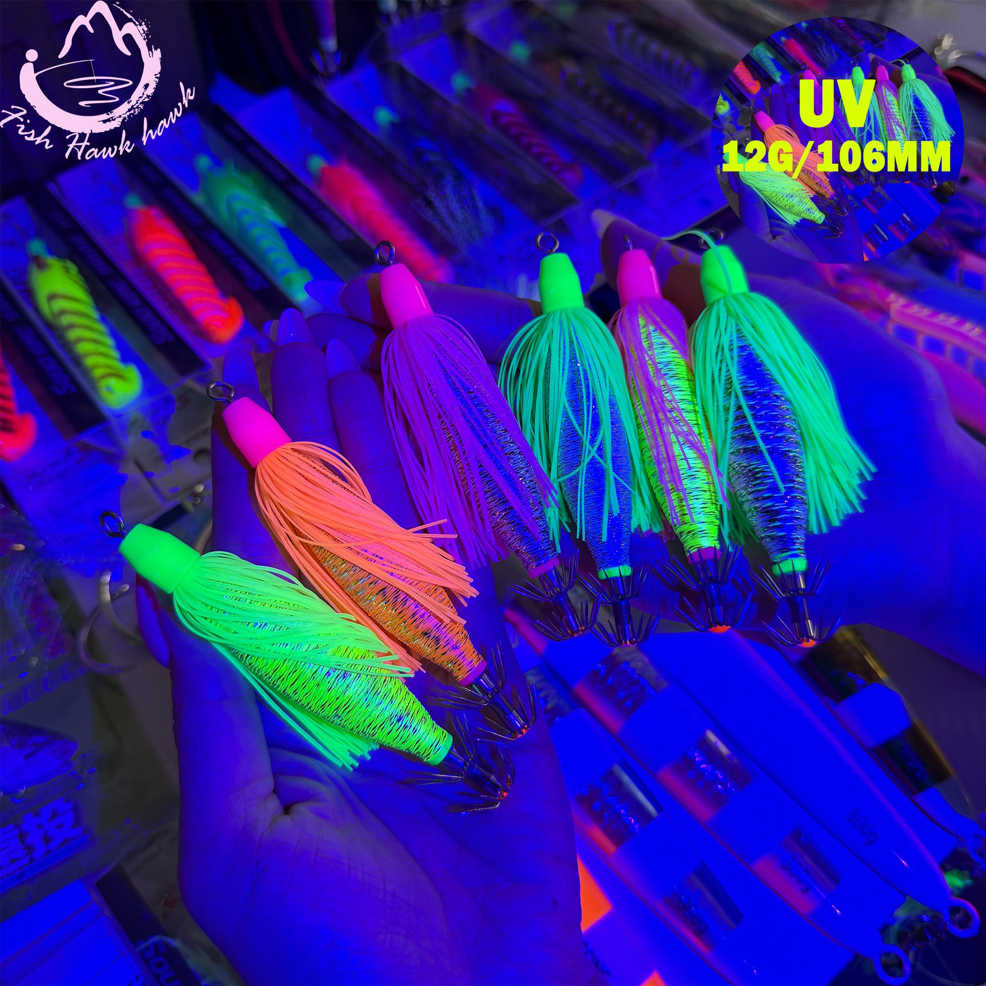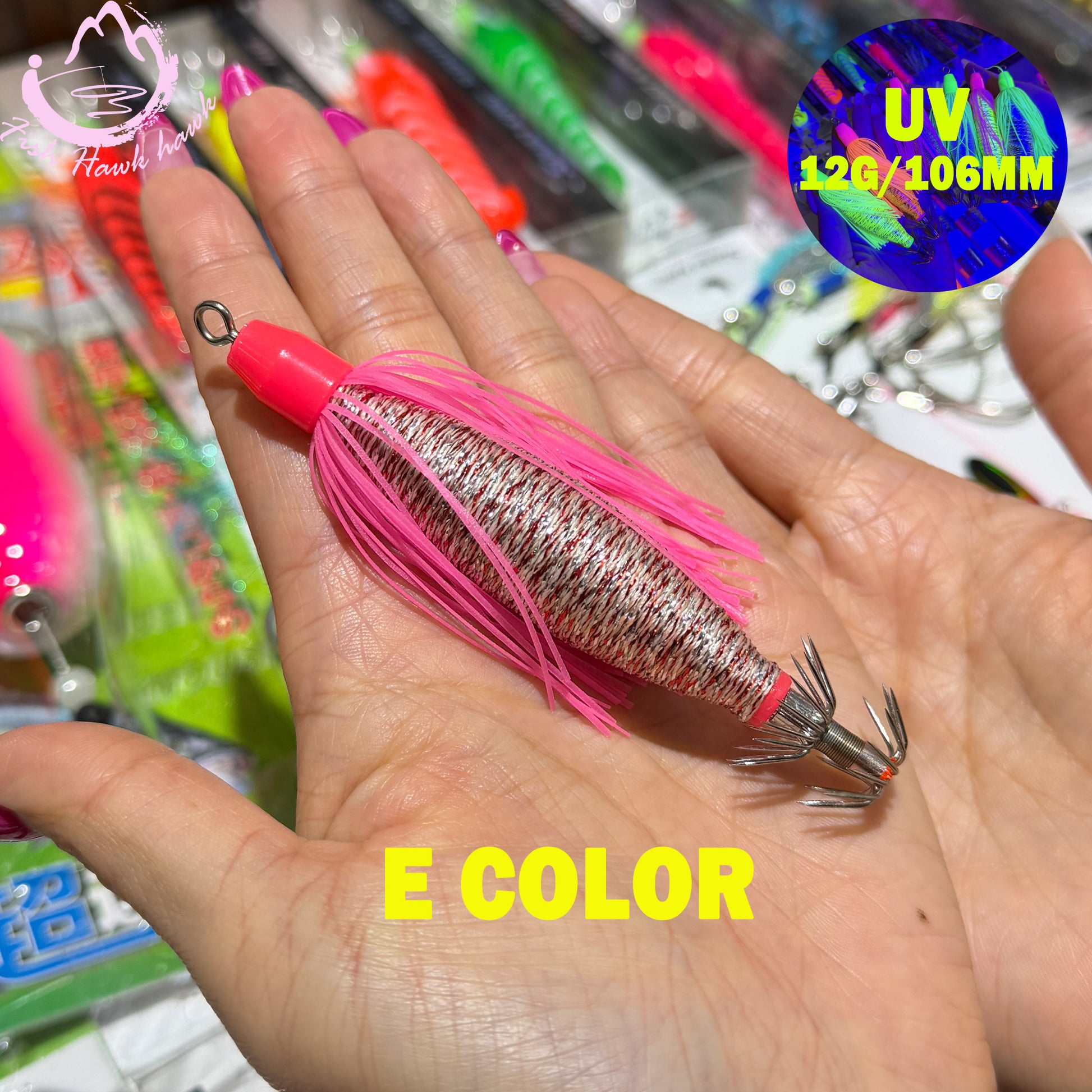New 12g 106mm ABS PVC Midwater Night Glow UV Squid Jigs Premium Fishing Lures Squid Cuttlefish Octopus UV Glow High Visibility Squid hook